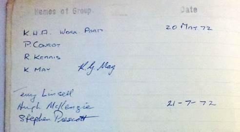 - Some years ago I was wondering about KNP hut log books and what happened to them as they filled up. My research led me to a government archives establishment in Hurstville, Sydney. There I found our entry in Brooks log book during that trip.